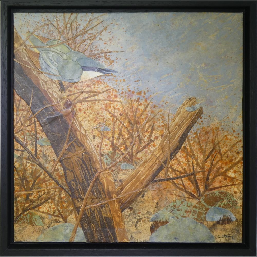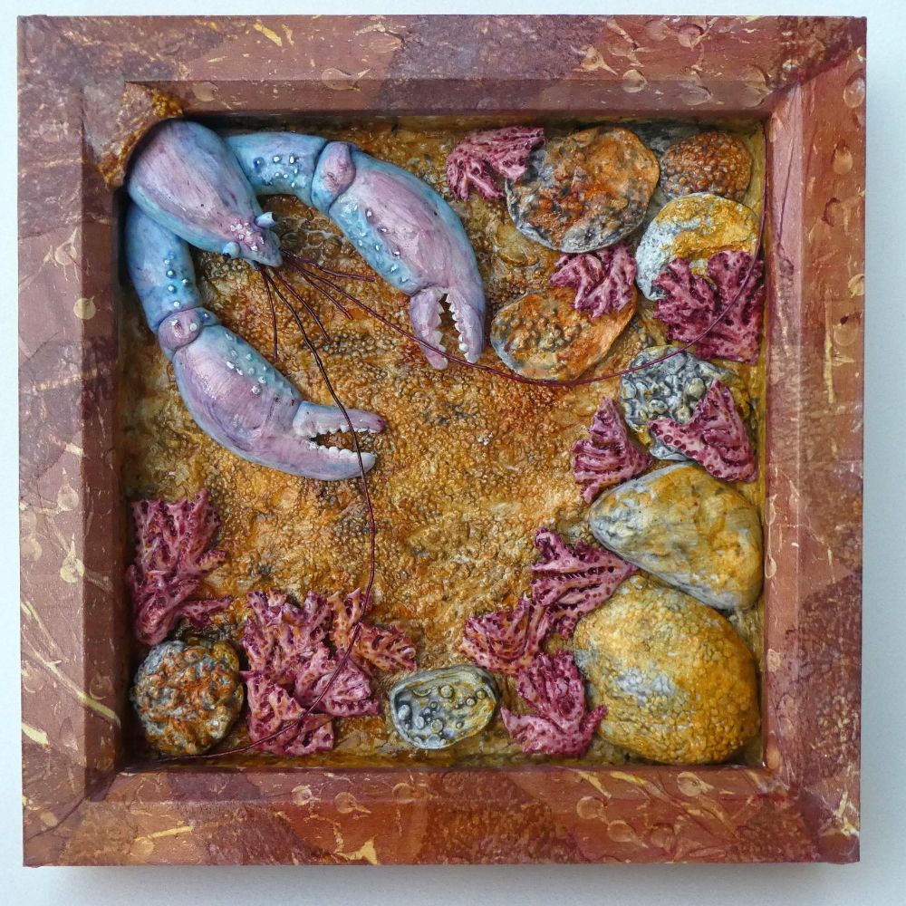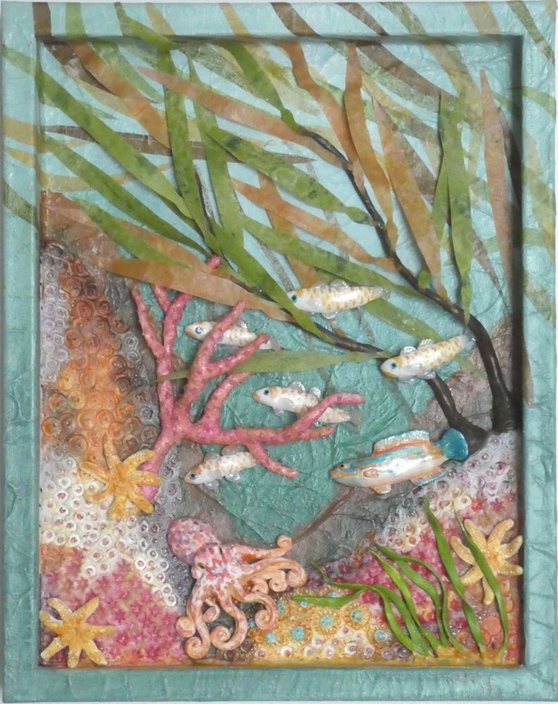 Whether I am making a collage from papers I print myself, or I am sculpting a diorama from polymer clay, I first have to learn about the subject and its habitat. At the moment my collages are mostly about birds and my dioramas about life in our coastal waters, but I find all of nature fascinating and am easily tempted by a new subject.